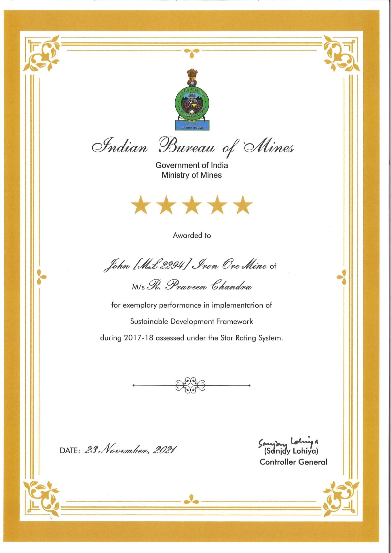 “5-Star rated Mine” for the year 2021-22 for Sustainable Mining Operations